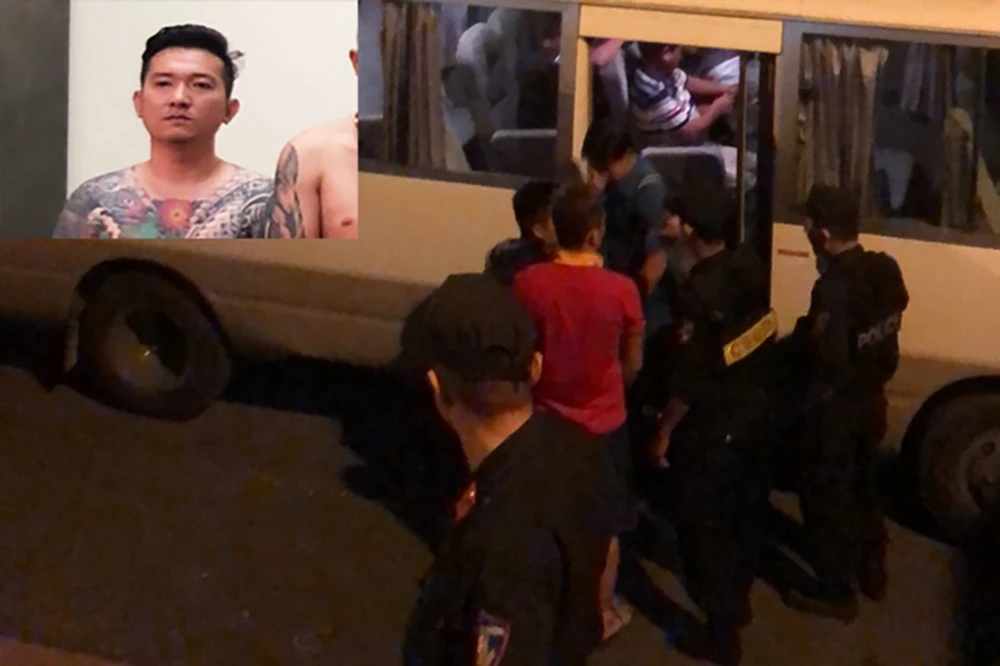 Vũ (ảnh nhỏ) cùng đàn em bị Bộ Công an bắt chiều 8-1. Ảnh CA.