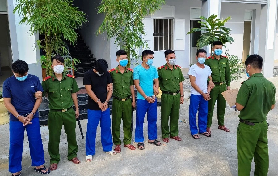 Công an đọc lệnh bắt tạm giam 4 nghi phạm. Ảnh: H.H