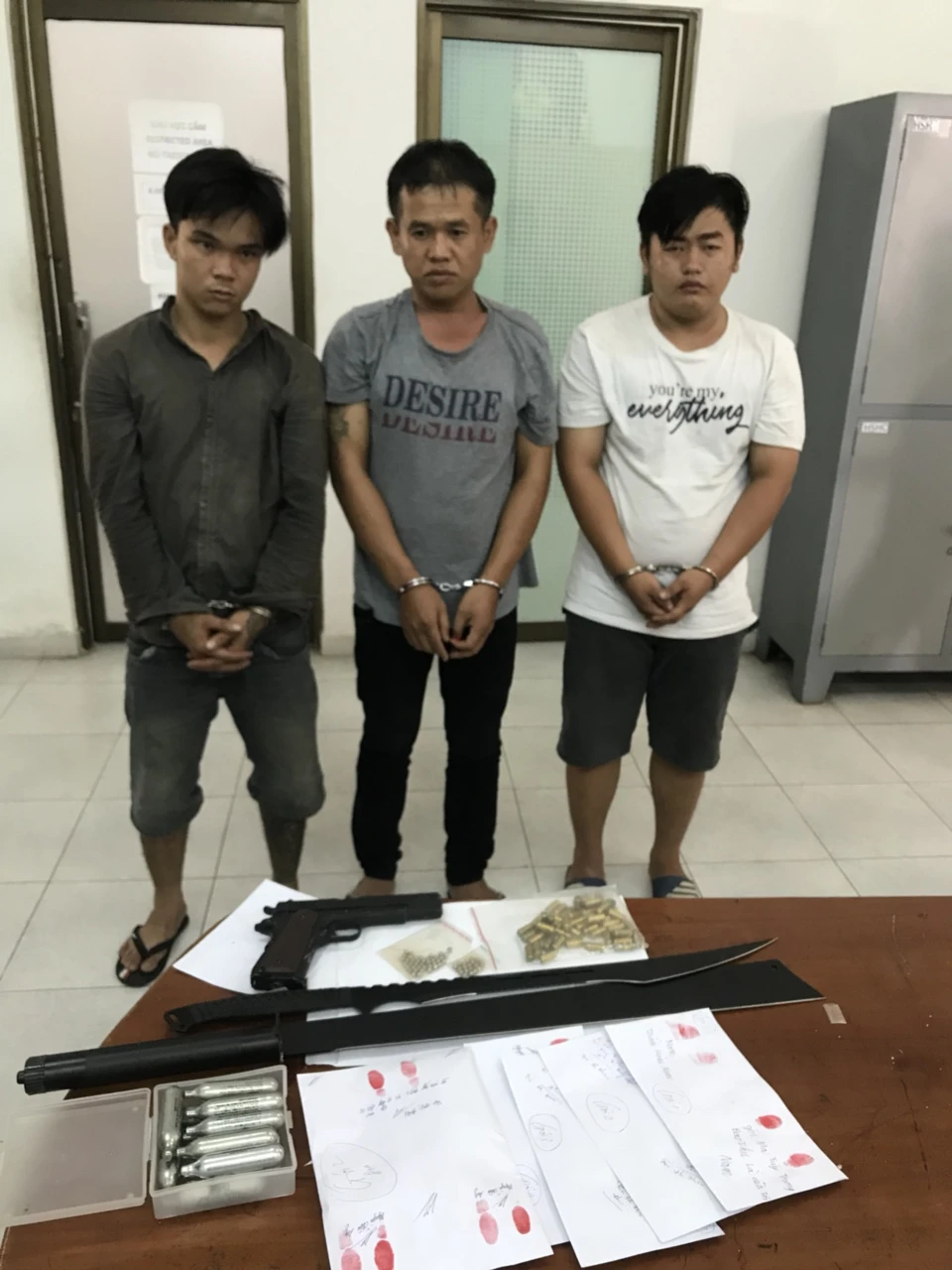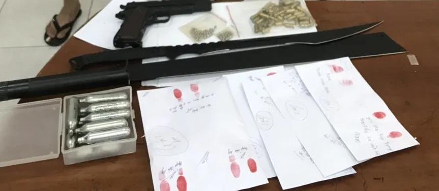 Cả ba đối tượng trên đều đã có tiền án, tiền sự về hành vi mua bán trái phép chất ma túy. Trong đó, Long từng nhận mức án bảy năm tù cho hành vi này. Tại cơ quan điều tra, các đối tượng thừa nhận chúng mua súng qua các trang mạng để tự vệ, dao thì tự chế để phòng thân.