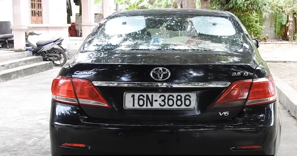 Chiếc ô tô Camry Công an huyện Nghi Lộc đang tạm giữ.