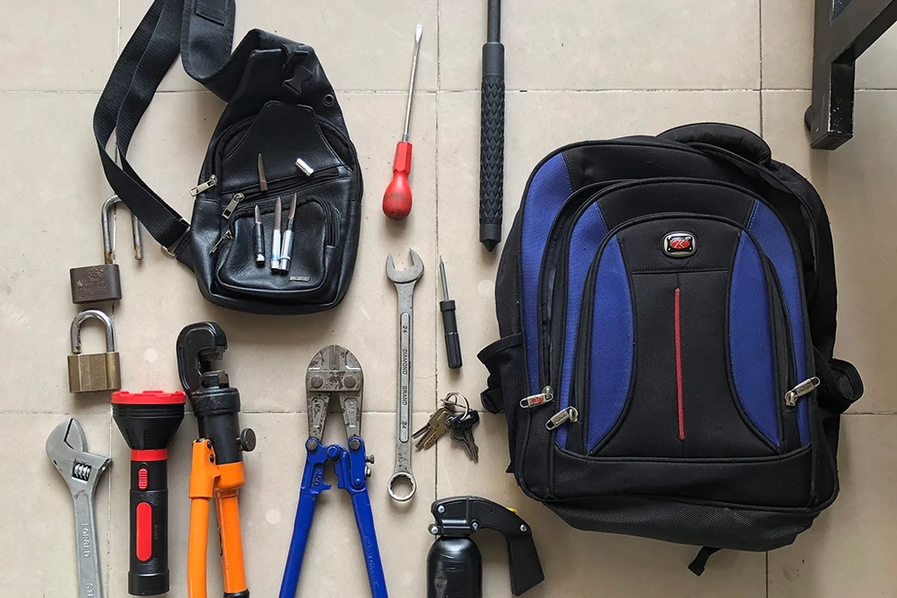 Nhóm trộm luôn thủ sẵn bình xịt hơi cay, gậy ba khúc mỗi khi "nhập nha" lấy tài sản. Ảnh: CA