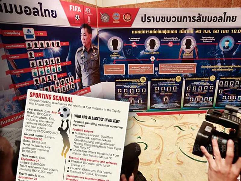 Chiến dịch hốt trọn ổ scandal dàn xếp tỉ số trong bóng đá Thái Lan đang được tiến hành. Ảnh: BANGKOK POST