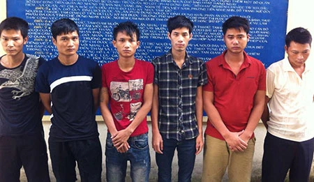 Sáu nghi can tham gia cá độ bóng đá bị công an tạm giữ. Ảnh: HA
