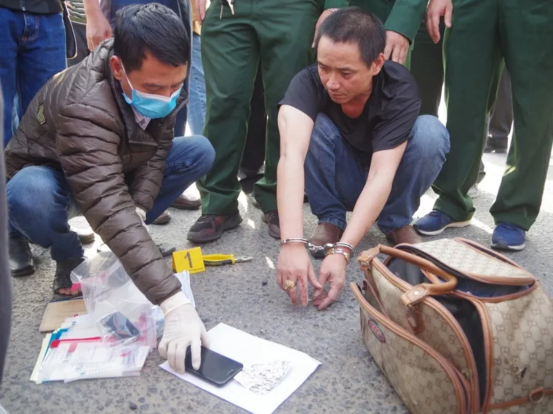 Lực lượng chức năng phát hiện trên xe chở một túi du lịch, bên trong chứa 14 bánh chất bột màu trắng. Qua kiểm tra ban đầu xác định số chất trên là heroin.