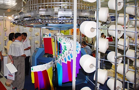 Thiết bị, nguyên phụ liệu của Trung Quốc tại triển lãm ngành dệt may. Ảnh: HTD