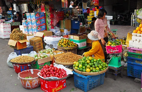 Trái cây Trung Quốc tại TP Châu Đốc, An Giang. Ảnh: HTD