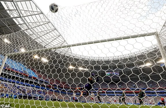 Phút 38, trên chấm phạt đền, Jedinak sút thắng Schmeichel san bằng tỉ số 1-1 cho Úc. Còn nhớ ở trận trước, tuyển Úc thua hai bàn trước Pháp đều từ những quyết định do công nghệ VAR đưa ra. Bây giờ người Úc lại được hưởng lợi nhờ công nghệ. 1-1 là tỉ số sau 45 phút đầu tiên thi đấu.