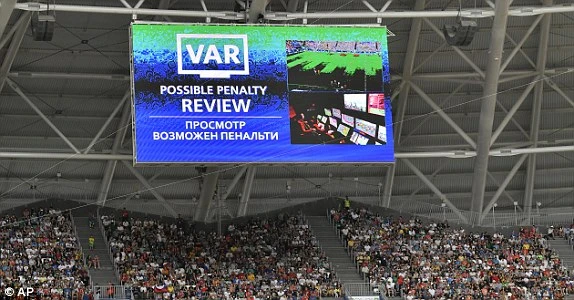 Công nghệ VAR giúp Úc đuổi kịp Đan Mạch trên bảng tỉ số ở những phút cuối hiệp 1.