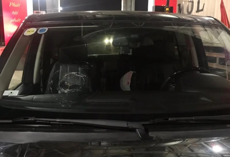 Một trong số những ô tô bị ném đã vỡ kính khi chạy trên cao tốc Hạ Long - Hải Phòng