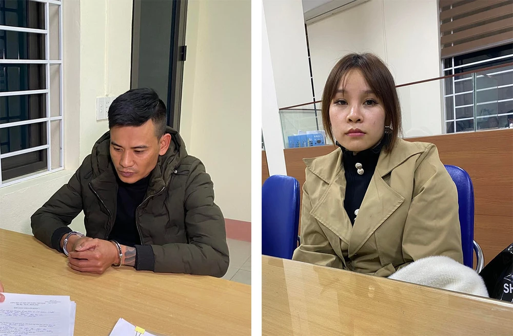 Chu Trung Kiên và Hoàng Thị Linh tại cơ quan công an. Ảnh CTV
