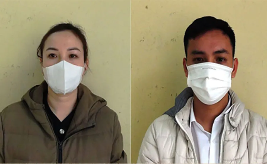 Nguyễn Thị Tới và Lê Công Đức tại cơ quan công an. Ảnh: Công an cung cấp