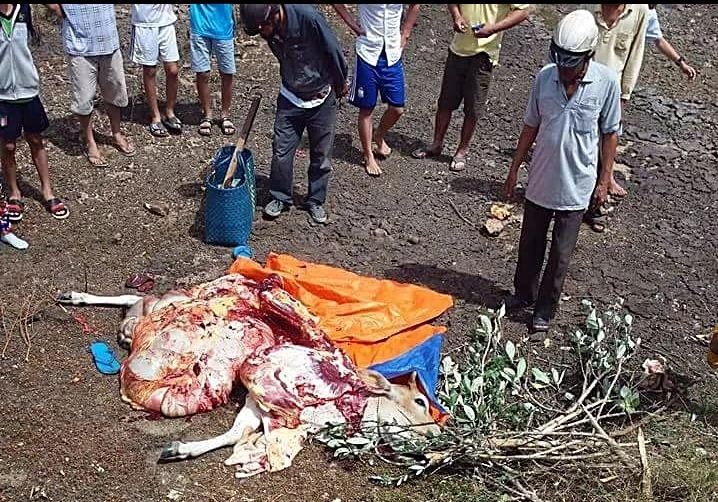 Trước đó, vào trưa 17-2, một người dân ở thôn Hạnh Trí, xã Quảng Sơn (Ninh Sơn) phát hiện con bò cái của mình đang cho ăn tại khu vực nghĩa trang thôn Hạnh Trí bị mất. Tìm kiếm, người này phát hiện con bò mình đã bị ai đó xẻ thịt cắt hết nửa con mang đi, chỉ còn lại nửa con và nội tạng, chỉ cách nơi cho ăn khoảng 500 m.
