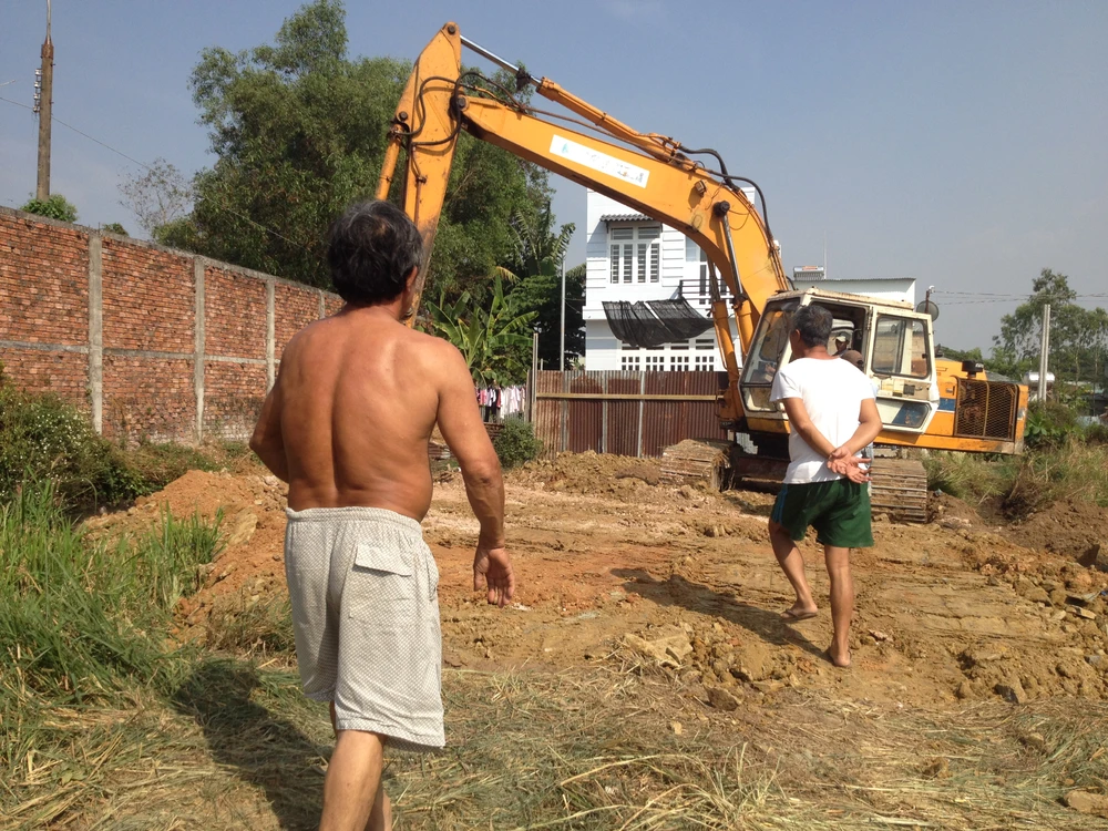 Công ty Đồng Xanh đang lấp lại hố đào.