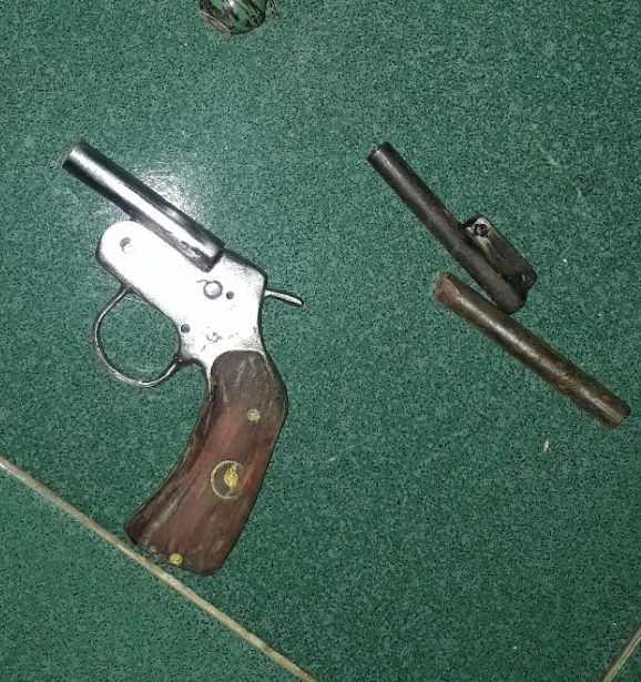 Qua kiểm tra, công an phát hiện các đối tượng trên đang cất giấu một khẩu súng ngắn tự chế, hai viên đạn…, 37 vỏ đạn quân dụng và nhiều bộ phận kim loại.
