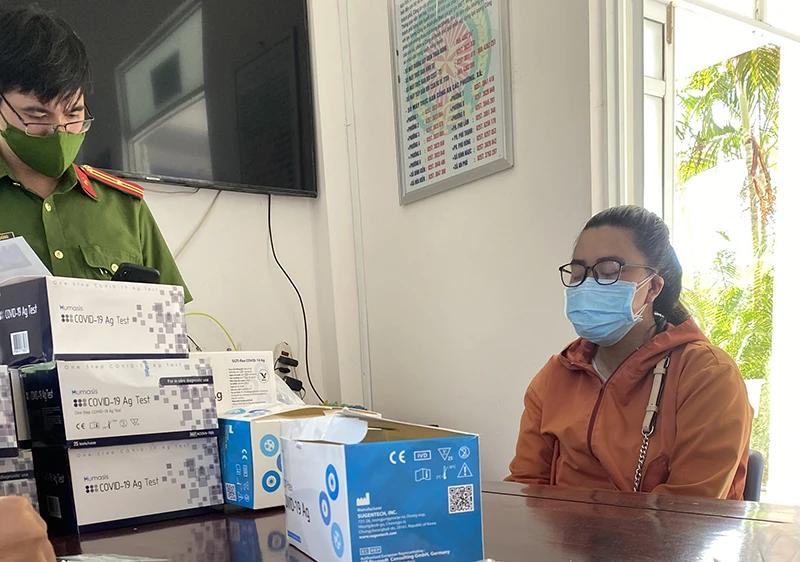 Bà H. có dấu hiệu mua bán trái phép bộ kít test nhanh. Ảnh: CA