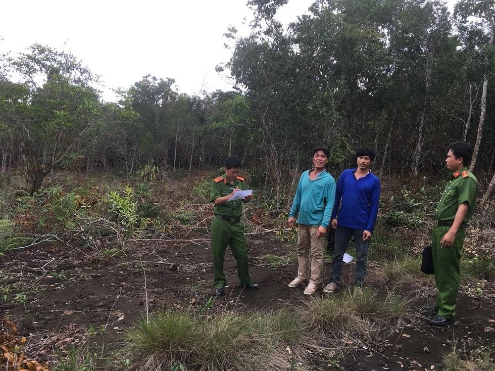 Hai người bị bắt quả tang là Trần Văn Lành (31 tuổi, ngụ tỉnh An Giang) và Nguyễn Thành Phương (40 tuổi, ngụ Phú Quốc). Cả hai cùng khai báo chặt phá rừng thuê cho một người khác với giá 500.000 đồng/người/ngày, nhưng không khai báo được là làm thuê cho ai.