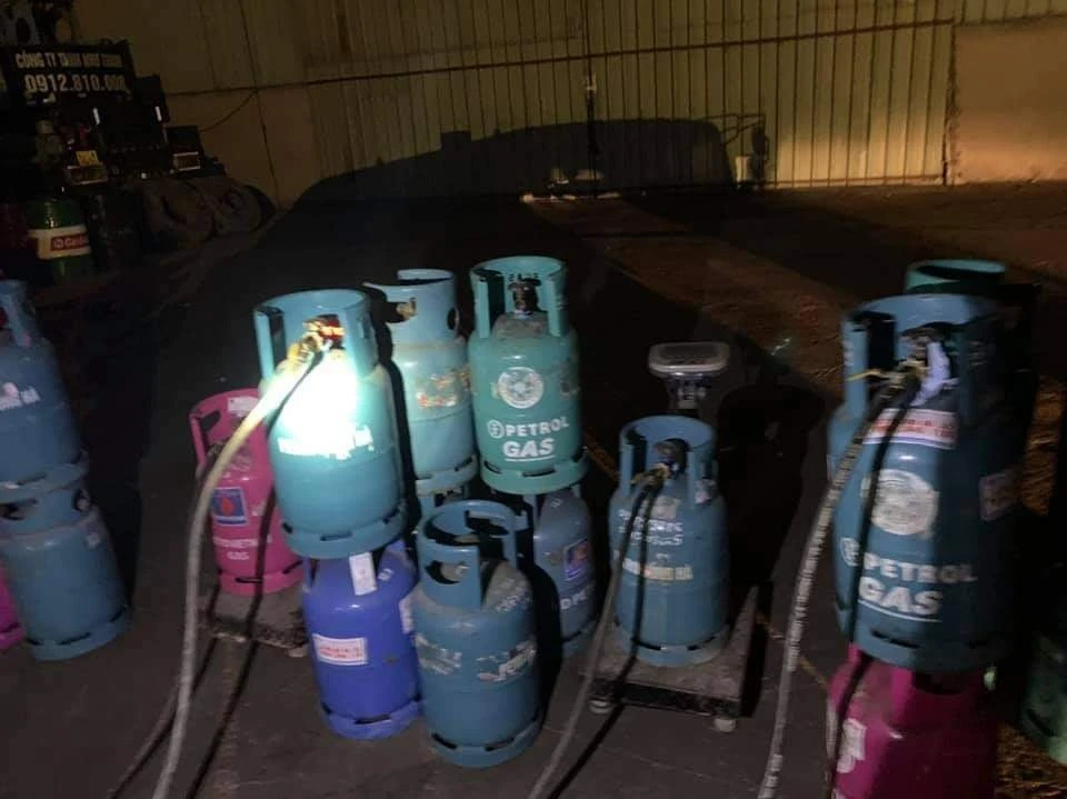 Lực lượng cảnh sát PCCC phát hiện bắt quả tang vụ chiết gas trái phép.