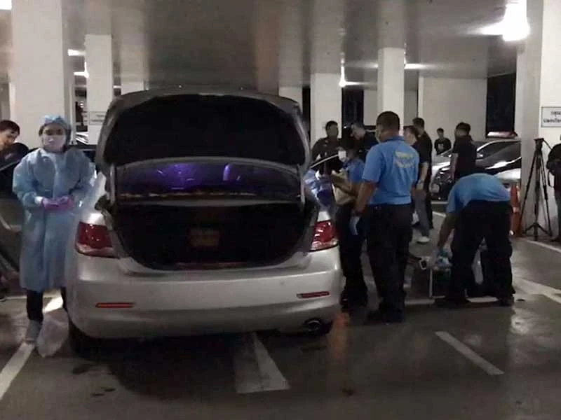 Các cảnh sát pháp y đang thu thập mẫu ADN và dấu vân tay trong xe để lấy thêm bằng chứng. Ảnh: THE NATION