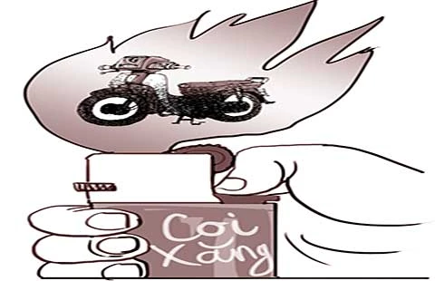 Bạn của Thanh chạy đi mua xăng về đổ. Khi mang chai xăng đến nơi, trời sập tối, Thanh bật quẹt ga soi cho bạn đổ xăng vào bình thì lửa phựt cháy. Giữa đồng, không ai kịp cứu nên cả hai chỉ biết bỏ chạy ra xa, đứng nhìn chiếc xe bị lửa thiêu trơ khung sắt. Bật quẹt soi xăng kiểu này, hổng khác gì tự đốt xe!