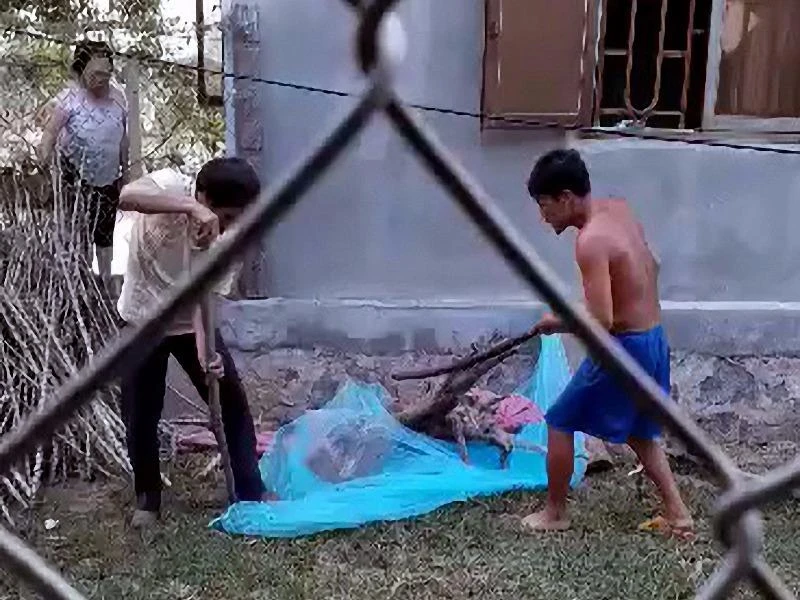 Một con rắn hổ mang chúa màu đen, có chiều dài gần 2 m, nặng 2,2 kg đã bò vào đống củi nhà dân. Khi phát hiện sự việc, gia chủ hoảng hồn la lớn cầu cứu. Hàng xóm nghe thấy vội chạy đến, một người đàn ông yêu cầu gia chủ vào nhà lấy chiếc mùng tủ vào vị trí con rắn đang ẩn thân.