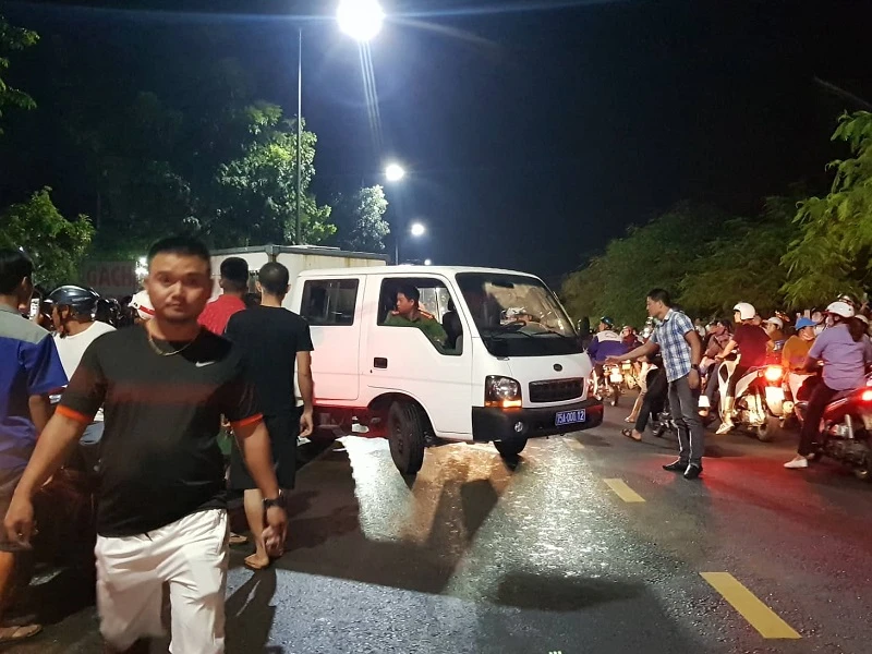 Bên ngoài ngôi nhà, nhiều CSGT đang điều tiết giao thông. Có rất đông người dân theo dõi vụ việc.