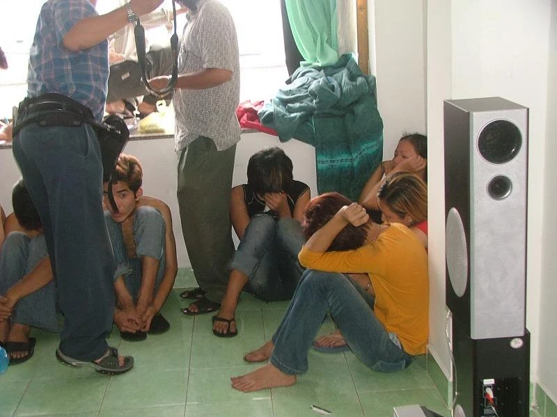 Cùng thời điểm này, tại căn biệt thự liền kề gần đó, trinh sát Đội Điều tra tội phạm về ma túy - Công an huyện Nhà Bè bắt quả tang 12 người (gồm 11 nam và một nữ) đang phê ma túy đá, nhảy múa cuồng loạn theo âm thanh nhạc phát ra từ chiếc loa mở hết công suất.