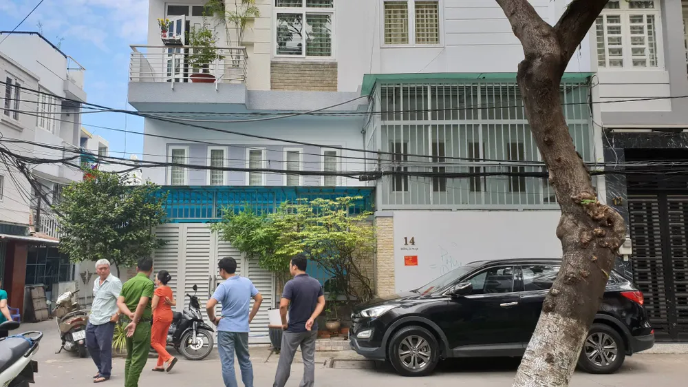 Lực lượng chức năng trước nhà ông Nguyễn Thành Tài trưa nay. Ảnh: HT
