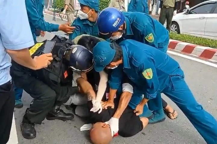 Cơ quan công an khống chế bắt giữ Bảo. Ảnh: Cắt từ clip