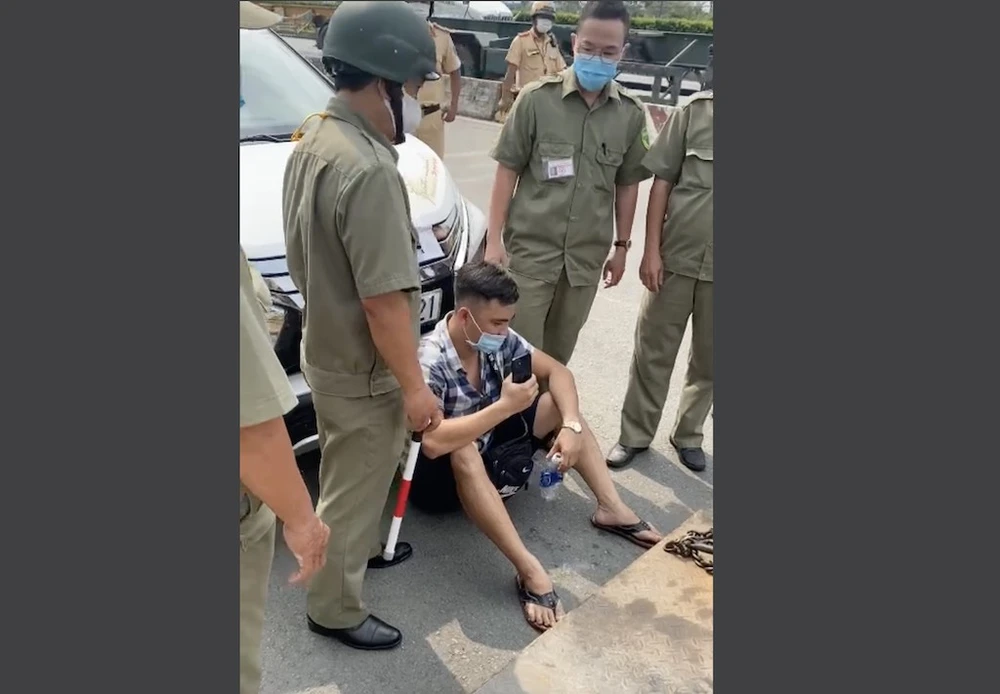 Trong quá trình xử phạt, Lê Chí Thành đã ngồi trước đầu xe và có nhiều yêu cầu đối với lực lượng chức năng.