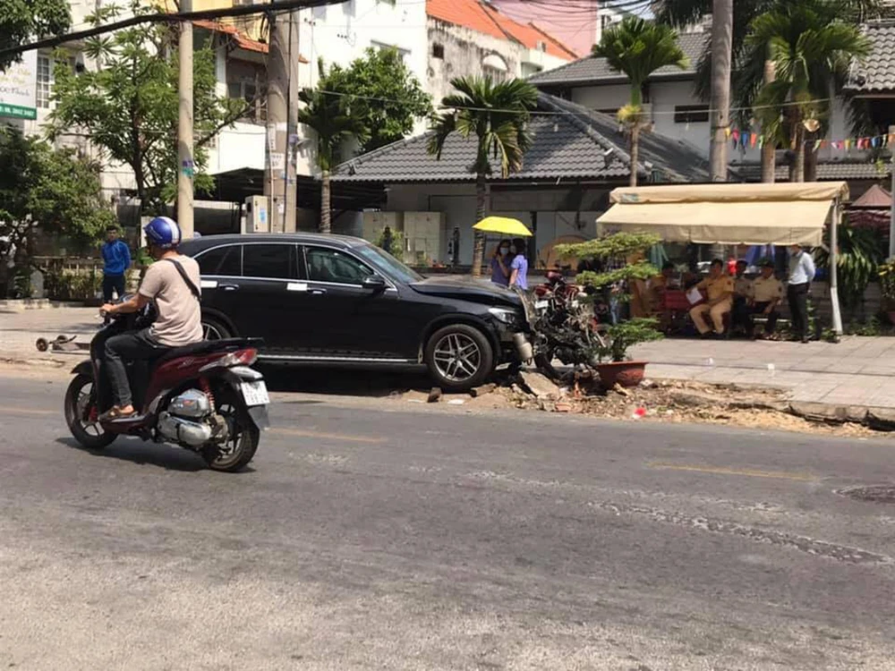 Chiếc Mercedes do Phong điều khiển tông trúng xe máy do tài xế Grab điều khiển trên đường Hồng Hà hôm mùng 6 tết. Ảnh: HT