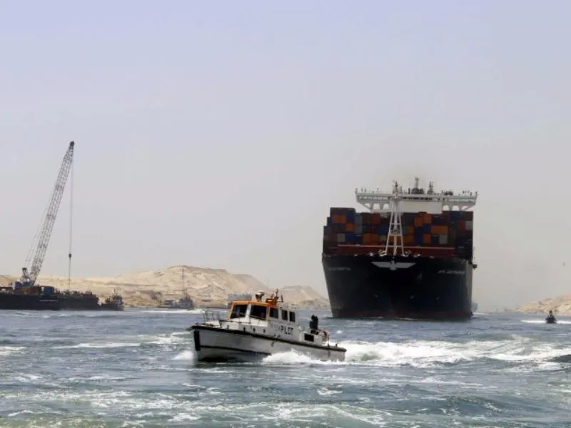 Một tàu chở hàng băng qua kênh đào Suez ở khu vực TP cảng Ismailia của Ai Cập. Ảnh: AFP