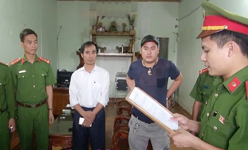 Cơ quan CSĐT, Công an Thanh Hóa đọc lệnh bắt giam Bùi Văn Thảo về tội gây rối trật tự công cộng, hủy hoại tài sản. Ảnh: ĐH