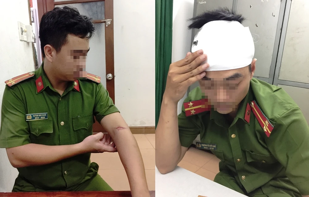 Hai trung úy công an bị thương. Ảnh: HẢI HIẾU