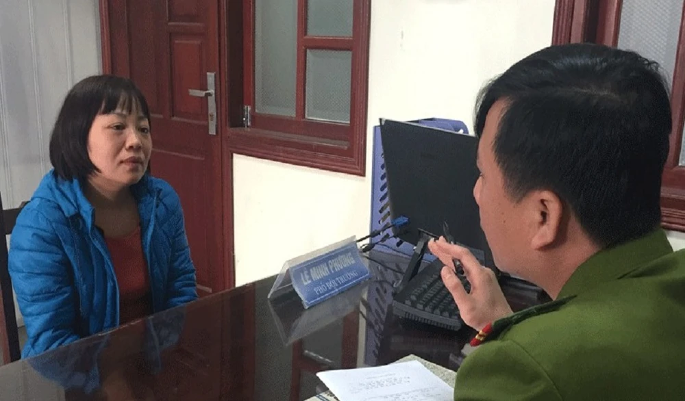 Cựu nữ PV Đào Thị Thanh Bình tại cơ quan công an. Ảnh: Báo Bắc Giang