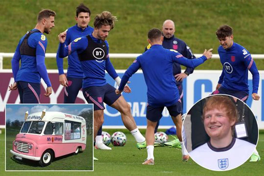 Ed Sheeran là một người hâm mộ đến từ Ipswich Town. Anh đã đến công viên St George với một chiếc xe tải chở đầy kem. Đây là khu vực xung quanh trại huấn luyện của tuyển Anh tại VCK Euro 2020. Thầy trò HLV Gareth Southgate đang chuẩn bị tích cực cho trận bán kết Euro 2020 gặp Đan Mạch trên sân nhà Wembley.