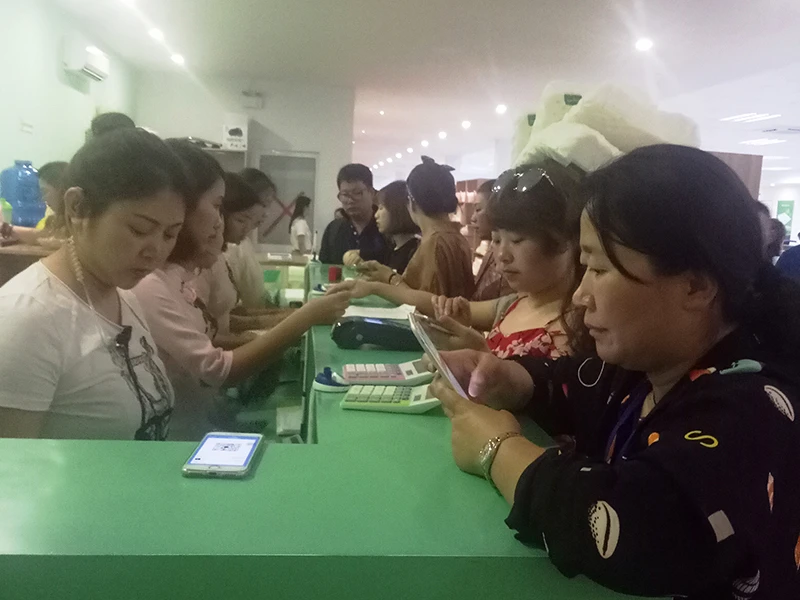 Khách Trung Quốc thanh toán qua máy POS tại một cửa hàng ở TP Nha Trang. Ảnh: TL