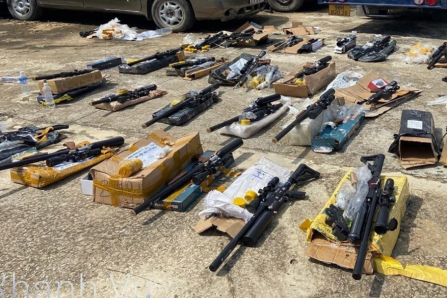 Khi xe đến thị trấn Plei Kần, tổ công tác đã yêu cầu dừng xe để kiểm tra. Qua kiểm tra, cơ quan công an phát hiện trên xe có hàng chục kiện hàng bên trong có 25 khẩu súng hơi (dạng vũ khí thể thao) đã được lắp ráp hoàn chỉnh, 17 bơm cao áp, 20.000 hộp đạn chì cùng nhiều loại linh kiện khác dùng cho súng.