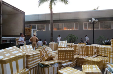 145 thùng xốp đang được lực lượng chức năng kiểm tra