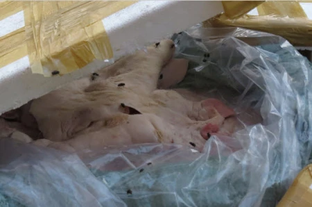 Lực lượng chức năng kiểm đếm 145 thùng xốp, có tổng trọng lượng 9.750kg, bao gồm các loại: Lòng lợn, thịt lợn, sách bò… Tất cả số nội tạng trên đã thối rữa, bốc mùi nồng nặc.