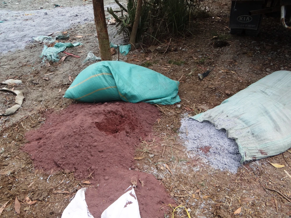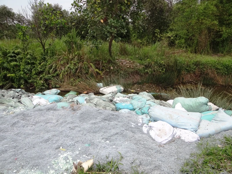 Theo ghi nhận tại hiện trường, chất thải có màu trắng đục, màu nâu đỏ, hơi tơi xốp và có mùi hôi rất khó chịu.