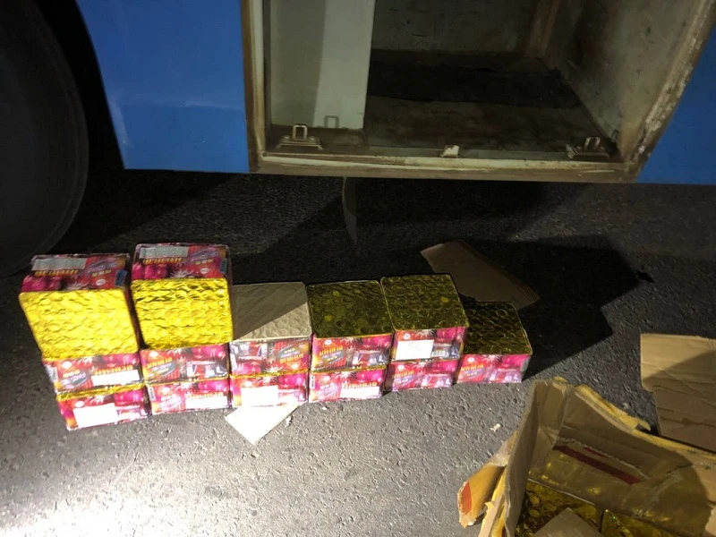 Tài xế điều khiển chiếc xe là anh Lê Tín (30 tuổi, trú xã Gia Lê, huyện Chư Pứ, Gia Lai). Kiểm tra dưới khoang chứa hành lý, tổ công tác phát hiện có ba thùng carton bên trong chứa 24 hộp pháo hoa với tổng trọng lượng 48 kg.