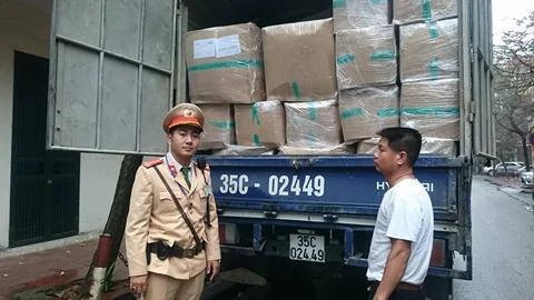 Sáng 16-3, tổ công tác thuộc Đội CSGT số 14 Công an TP Hà Nội phát hiện xe tải BS 35C-024.49 có dấu hiệu nghi vấn.