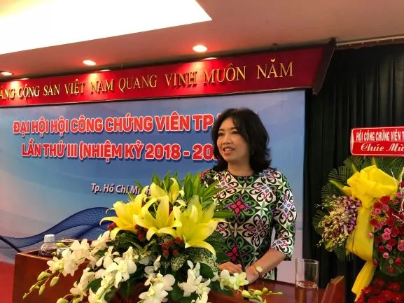 Bà Đỗ Hoàng Yến, Cục trưởng Cục Bổ trợ tư pháp, Bộ Tư pháp, phát biểu tại đại hội. Ảnh: KIM PHỤNG