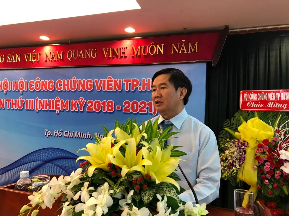 Ông Huỳnh Văn Hạnh, Giám đốc Sở Tư pháp TP.HCM, tại đại hội. Ảnh: KIM PHỤNG