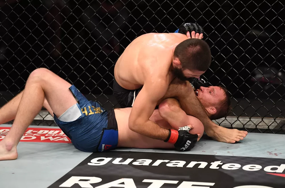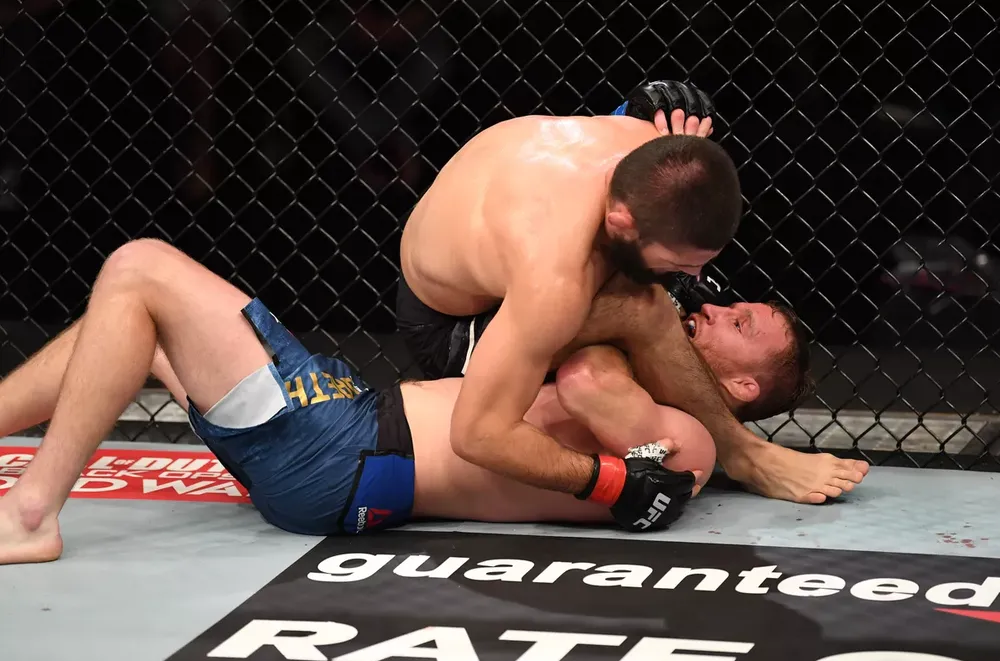 Khabib trong lần đánh bại Gaethje gần đây. Ảnh: UFC