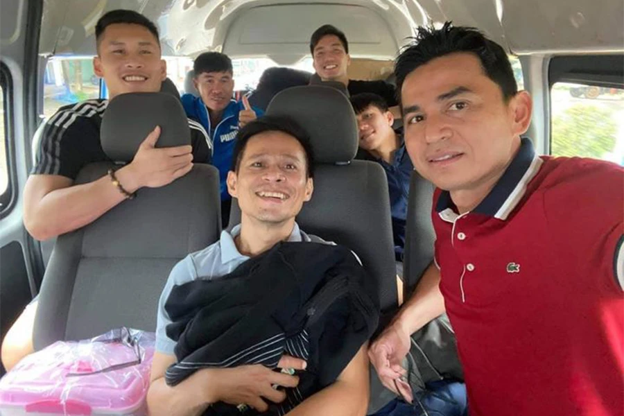 Kiatisak cùng các đồng nghiệp đi đường bộ từ Pleiku ra Nội Bài, rồi đáp chuyến bay về Bangkok sau khi quá cảnh tại Singapore. Ảnh: HAGL
