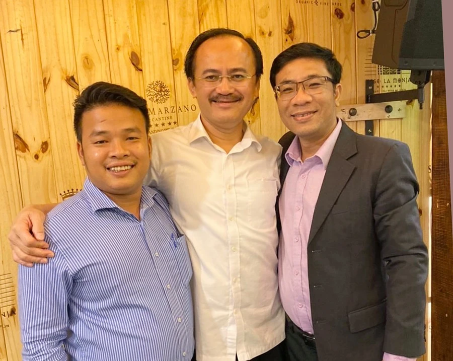 Các thành viên Ban tổ chức chụp hình lưu niệm cùng bầu Thắng. Ảnh: A. VIÊN