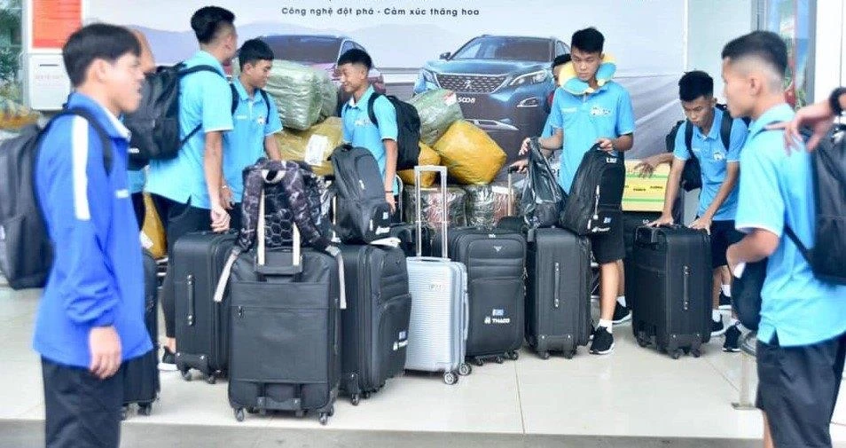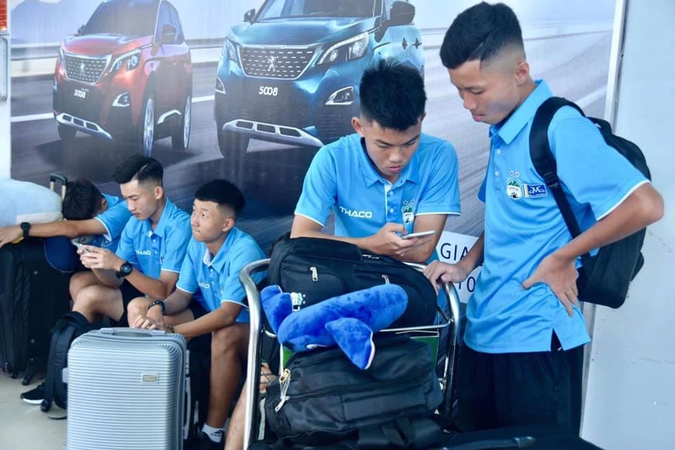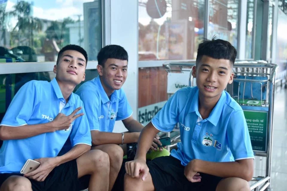 Cầu thủ Học viện HA Gia Lai JMG tranh thủ nhắn tin tạm biệt người thân trước giờ bay sang Hà Lan học bóng đá.