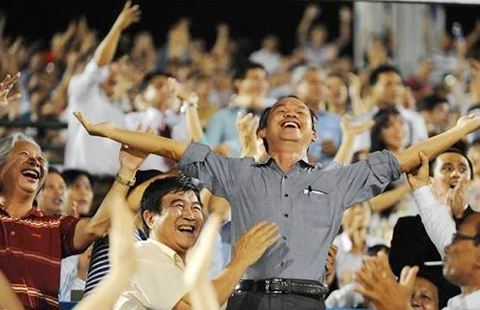 Bầu Đức sung sướng ở trận chung kết năm ngoái U-19 HA Gia Lai thắng đậm U-21 Thái Lan 3-0. Ảnh: XUÂN HUY