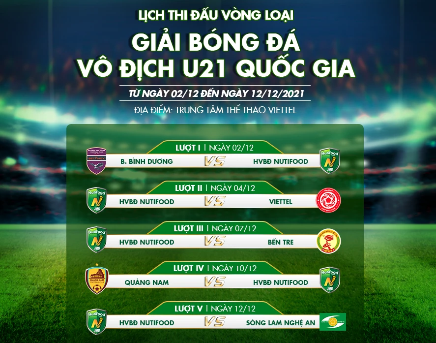 Ở vòng loại, Nutifood chung bảng C với những cái tên đáng gờm như U-21 Viettel vô địch năm 2020, SL Nghệ An á quân 2020, B. Bình Dương ba lần á quân U-21 (2008, 2011, 2018)…, hứa hẹn sẽ mang đến những trận đấu đầy gay cấn và kịch tính.